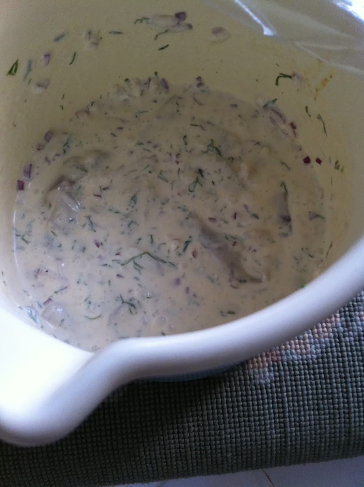 Ojoj,en dag kvar på mitt jobbmaraton,EN ledig dag i december börjar ta ut sin rätt men roligt är det :) Då krävs det listor o planering på allt o jag är helt klar med allt inför julen! Idag blev skinkan klar innan jobbet,jag vägrar köpa färdigkokt så det tar ju några timmar...En sill blev det också så här kommer ingredienserna till den,som vanligt har jag inga mått,man får blanda ihop såsen o smaka sig fram :) Blanda majonnäs,grädde,kalles kaviar,dill,mycket hackad rödlök o smaka av med salt o peppar. Blanda med 5-minuterssill så var det klart,bra om den kan stå o dra ett par dar så smakerna kommer fram ordentligt!